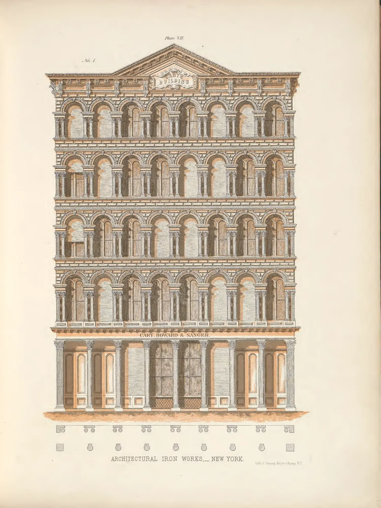 Pair of commercial store-front designs with varying pilaster treatments and ornamental transoms above plate-glass windows.